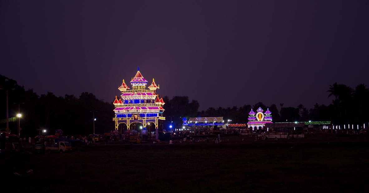 We will anchor our afternoon around a prominent temple festival in central Kerala, in or around Thrissur.