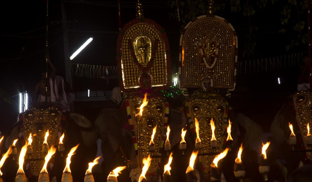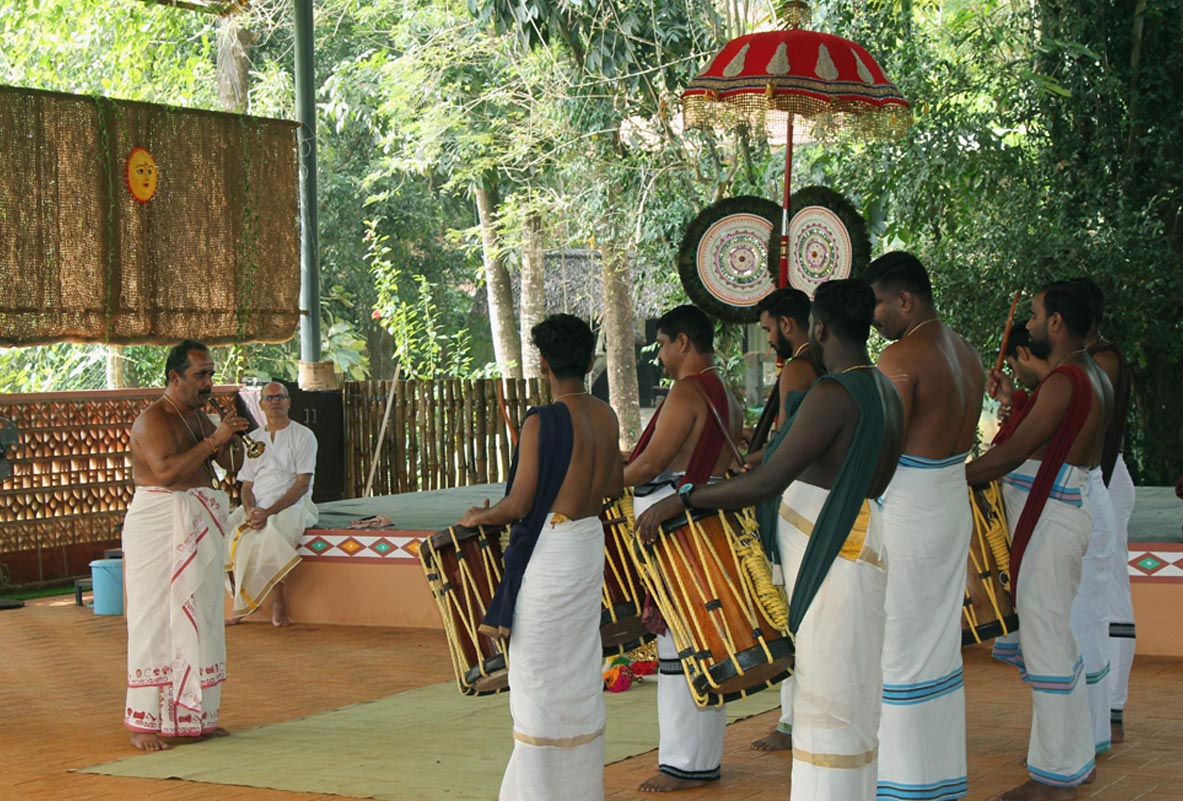 Each edition of Navarasam is scheduled around a temple festival in or around Thrissur. Most of these temple festivals are signified by a magnificent elephant procession accompanied by a percussion orchestra (melam). Other interesting variations are also explored at times, festivals that are more folk oriented. The primer on festivals is adapted to the specific festival we would visit, as such both these experiences would complement each other.
